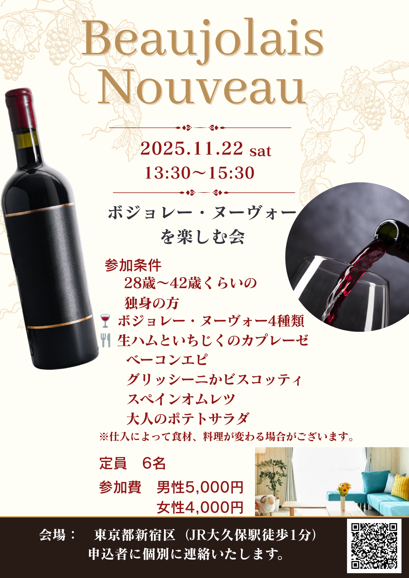 お申込み後、(参加者の安心安全のため)面談等独身確認などさせていただきます。